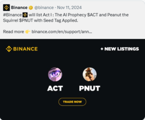 November 2024 Nov 1, 2024Feb 7, 20264 Comments on November 2024 4 Comments buy $pnut Reply do not sell $pnut. I have information it will be listed on binance soon Reply listed! Reply i sell $pnut here. 47x Reply Leave a Reply Cancel replyYour email address will not be published. Required fields are marked *Comment * Name * Email * Website Save my name, email, and website in this browser for the next time I comment. Attachment The maximum upload file size: 1 GB. You can upload: image, audio, video, document, spreadsheet, interactive, text, archive, code, other. Links to YouTube, Facebook, Twitter and other services inserted in the comment text will be automatically embedded. Drop file here